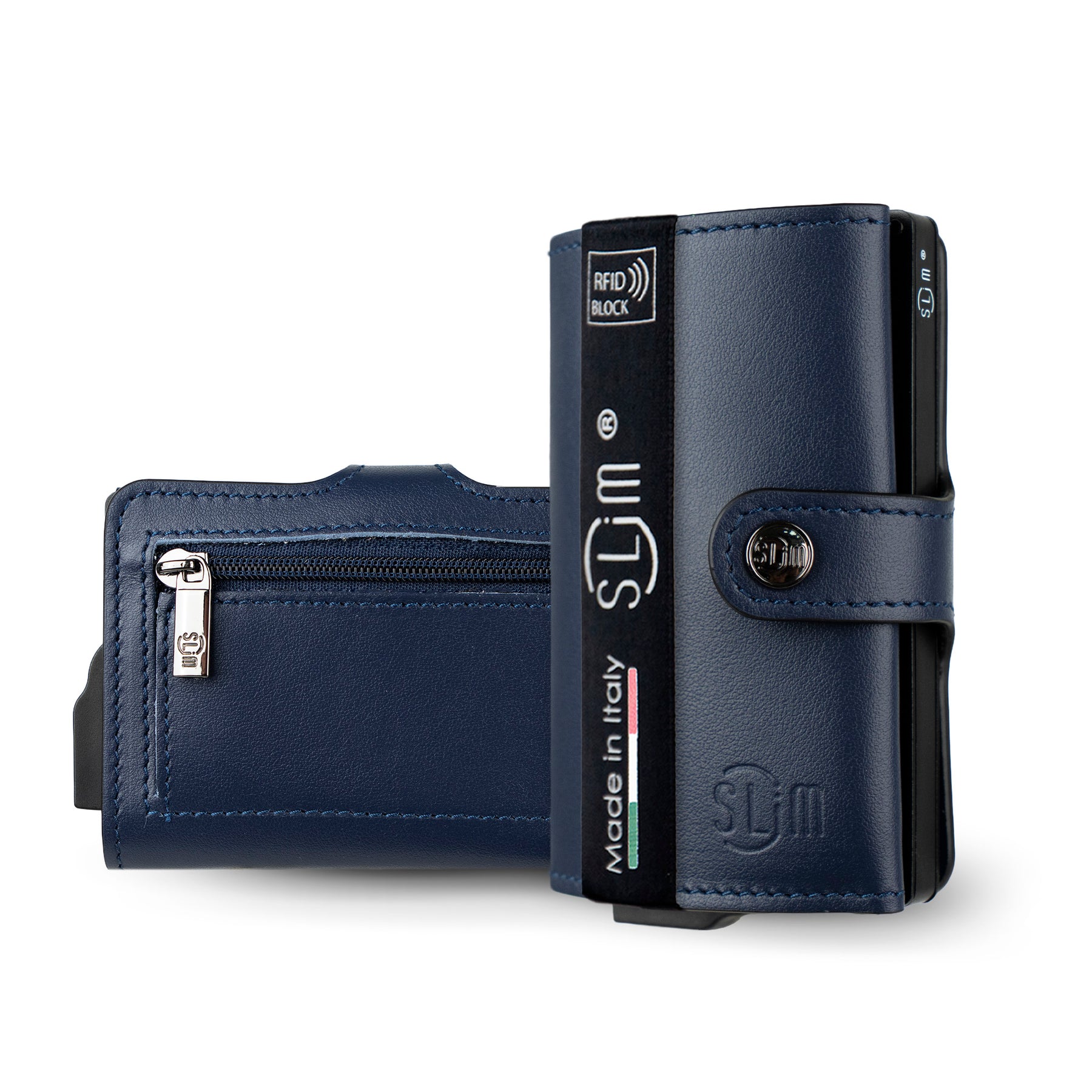 Compatto, leggero e sicuro, sono questi i tre aggettivi che descrivono il portafoglio SLim®. Infatti misura solamente 10,5 x 7 x 1,7 cm con un peso di soli 75 gr! Puoi inserire fino a 12 carte, 6/7 carte nella cassa in alluminio con protezione RFID e 4/5 nei taschini interni del portafogli.