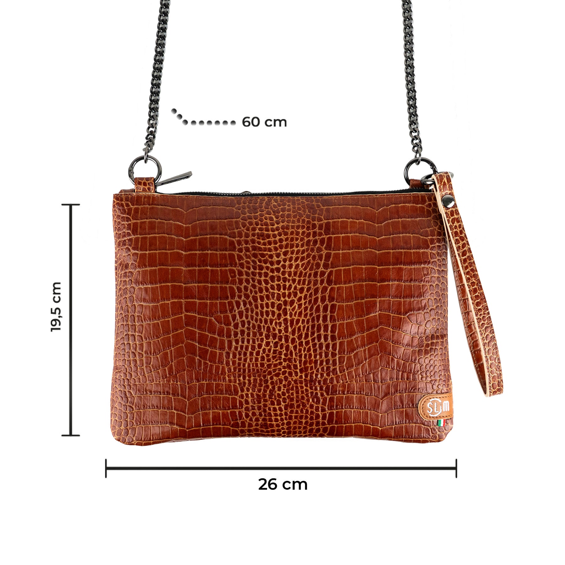 Pochette con Tracolla Vera Pelle Cocco Cuoio