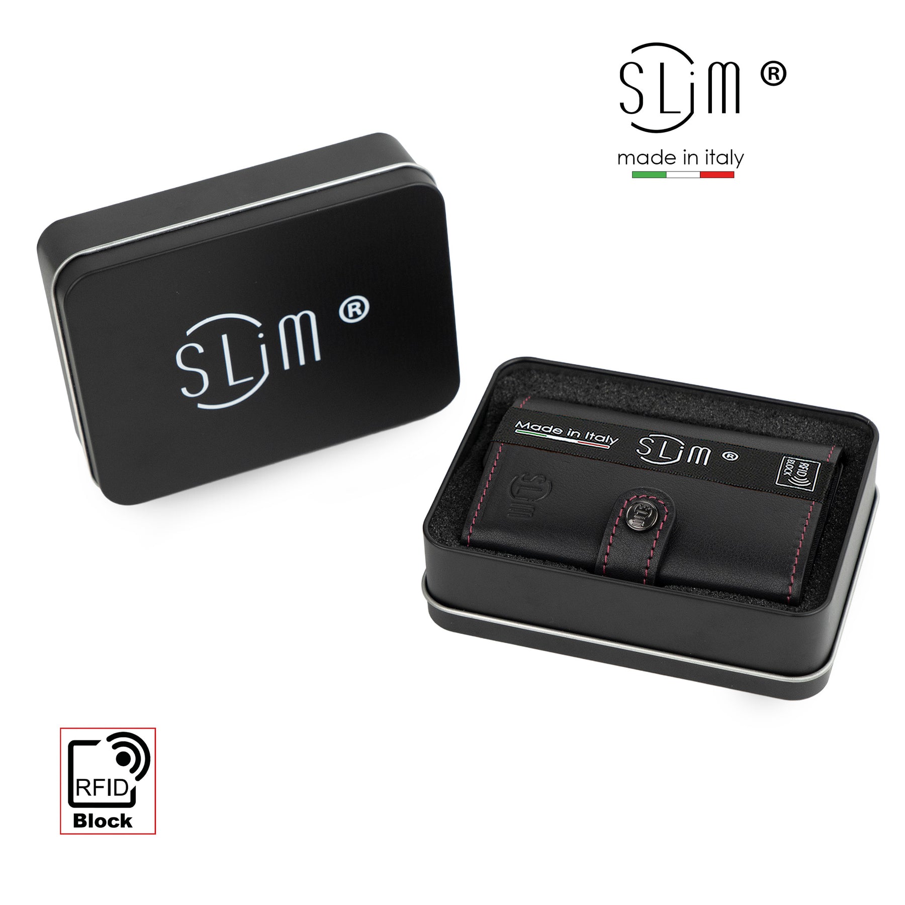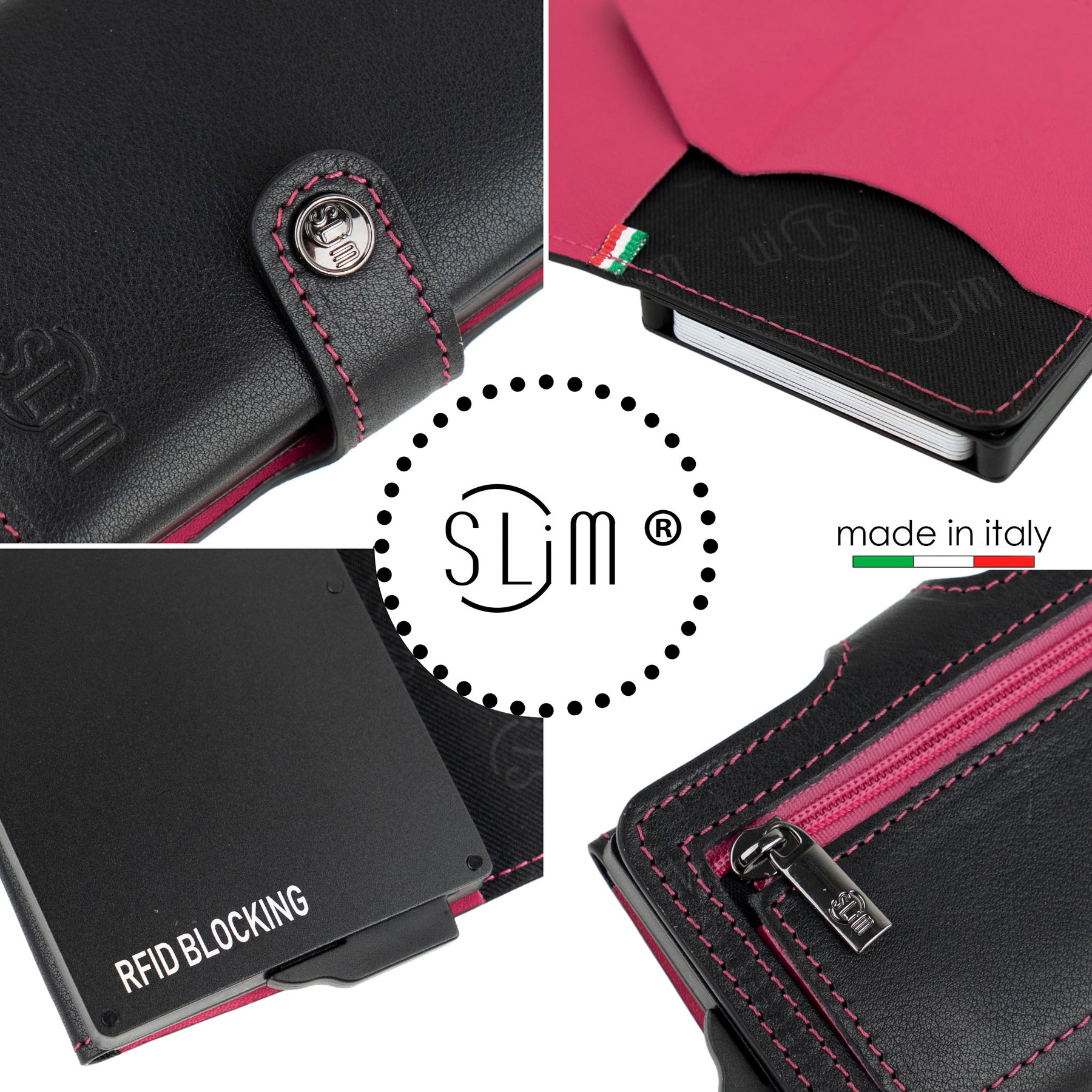 Compatto, leggero e sicuro, sono questi i tre aggettivi che descrivono il portafoglio SLim®. Infatti misura solamente 10,5 x 7 x 1,7 cm con un peso di soli 75 gr! Puoi inserire fino a 12 carte, 6/7 carte nella cassa in alluminio con protezione RFID e 4/5 nei taschini interni del portafogli.