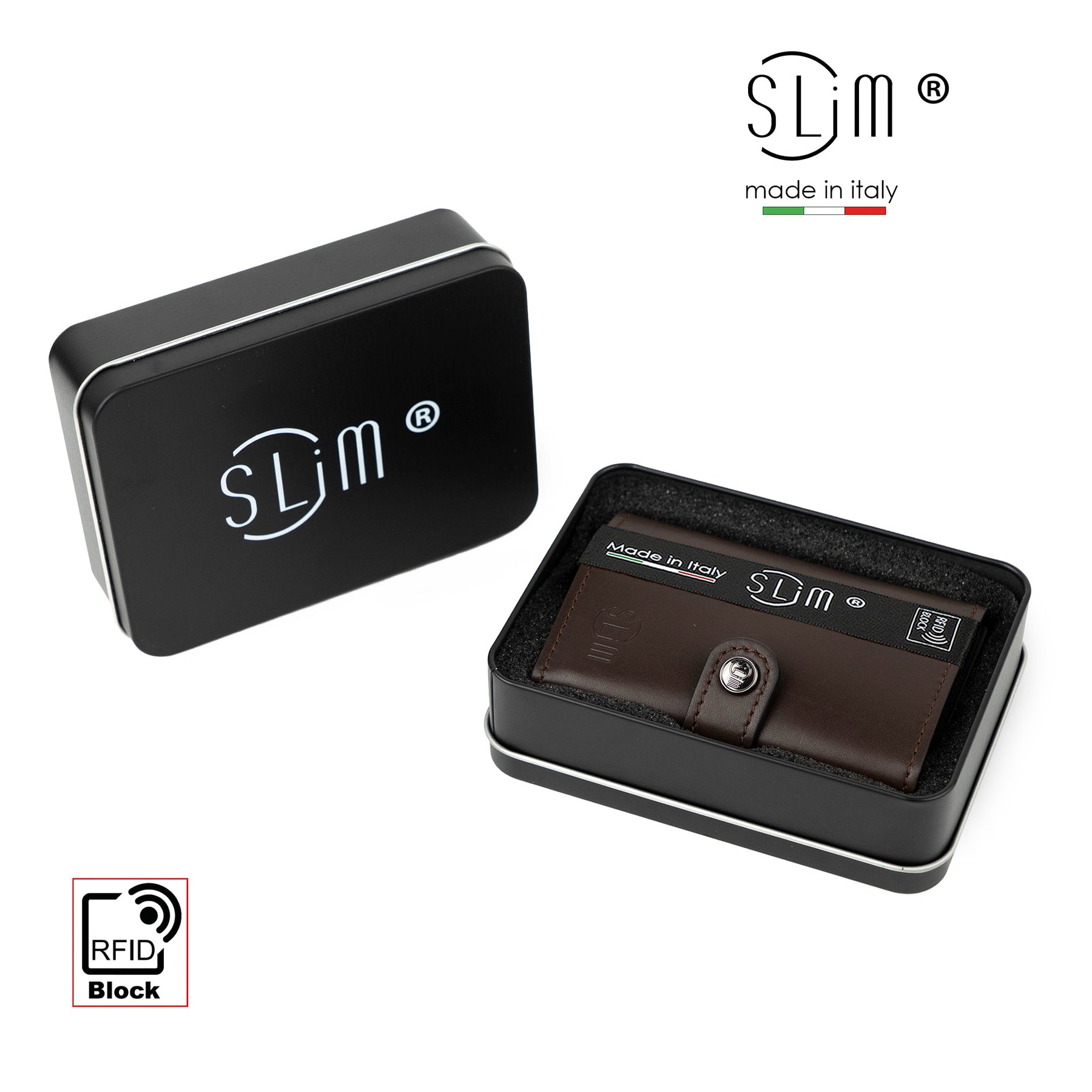 Compatto, leggero e sicuro, sono questi i tre aggettivi che descrivono il portafoglio SLim®. Infatti misura solamente 10,5 x 7 x 1,7 cm con un peso di soli 75 gr! Puoi inserire fino a 12 carte, 6/7 carte nella cassa in alluminio con protezione RFID e 4/5 nei taschini interni del portafogli.