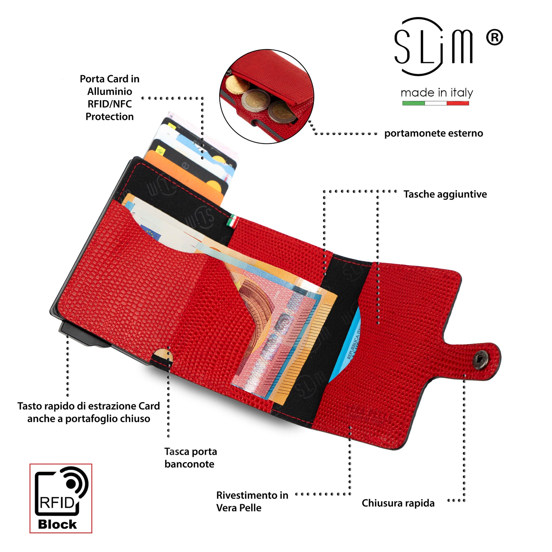 Il Portafoglio Compatto SLim® è dotato della protezione RFID/NFC che blocca qualsiasi lettore a metri di distanza da scansioni indesiderate! Potrai finalmente tenere al sicuro i tuoi dati all'interno del tuo SLim®.