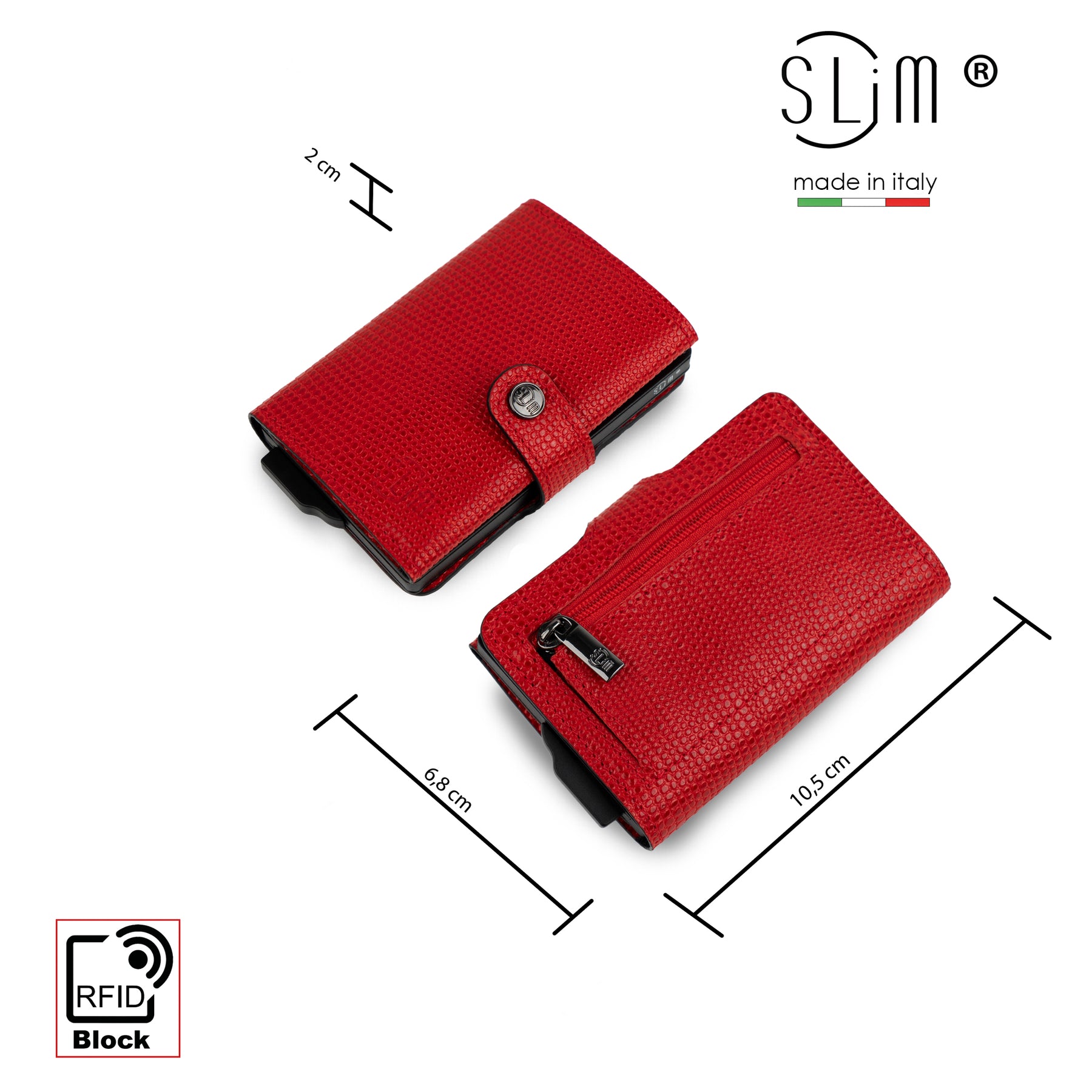 Compatto, leggero e sicuro, sono questi i tre aggettivi che descrivono il portafoglio SLim®. Infatti misura solamente 10,5 x 7 x 1,7 cm con un peso di soli 75 gr! Puoi inserire fino a 12 carte, 6/7 carte nella cassa in alluminio con protezione RFID e 4/5 nei taschini interni del portafogli.