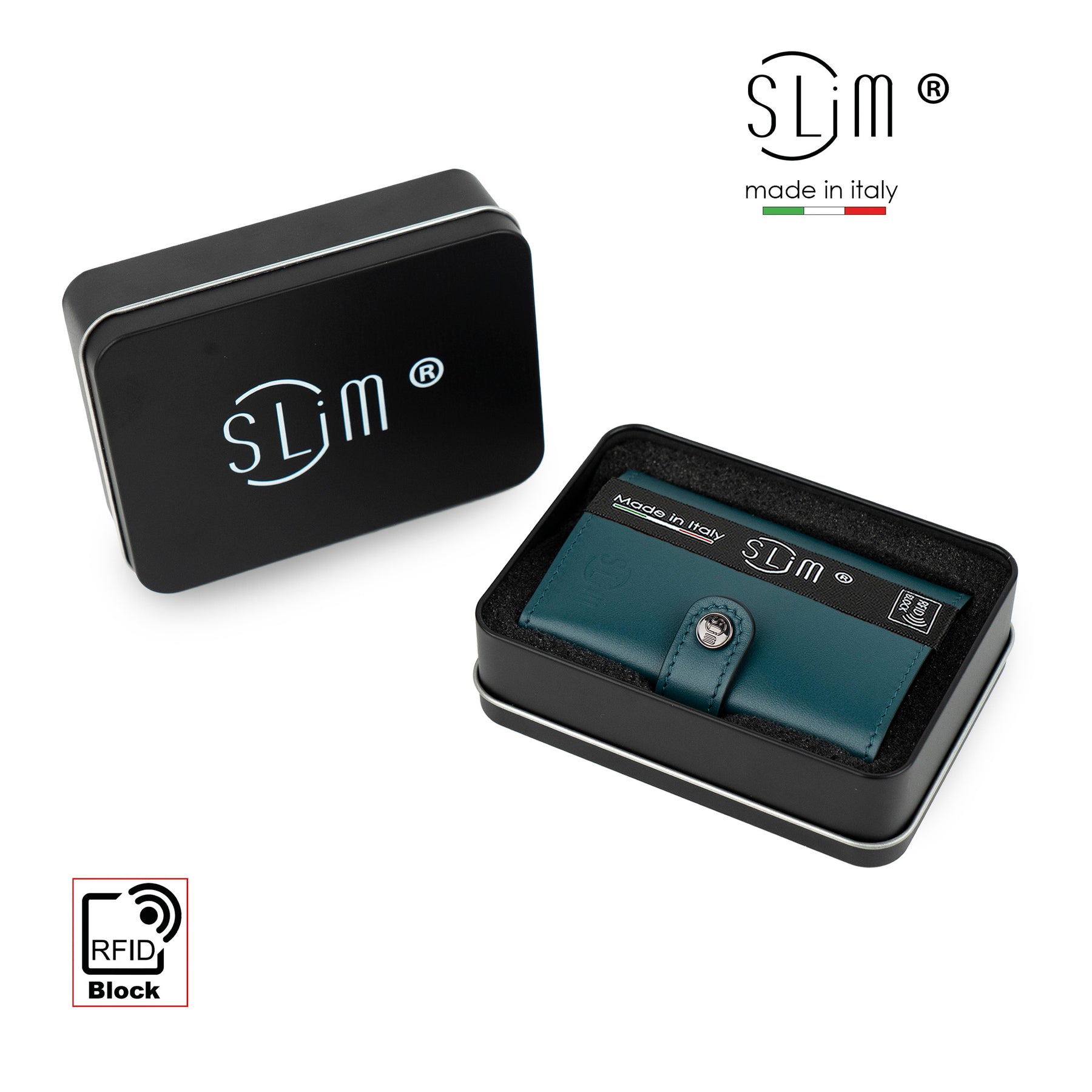 Compatto, leggero e sicuro, sono questi i tre aggettivi che descrivono il portafoglio SLim®. Infatti misura solamente 10,5 x 7 x 1,7 cm con un peso di soli 75 gr! Puoi inserire fino a 12 carte, 6/7 carte nella cassa in alluminio con protezione RFID e 4/5 nei taschini interni del portafogli.