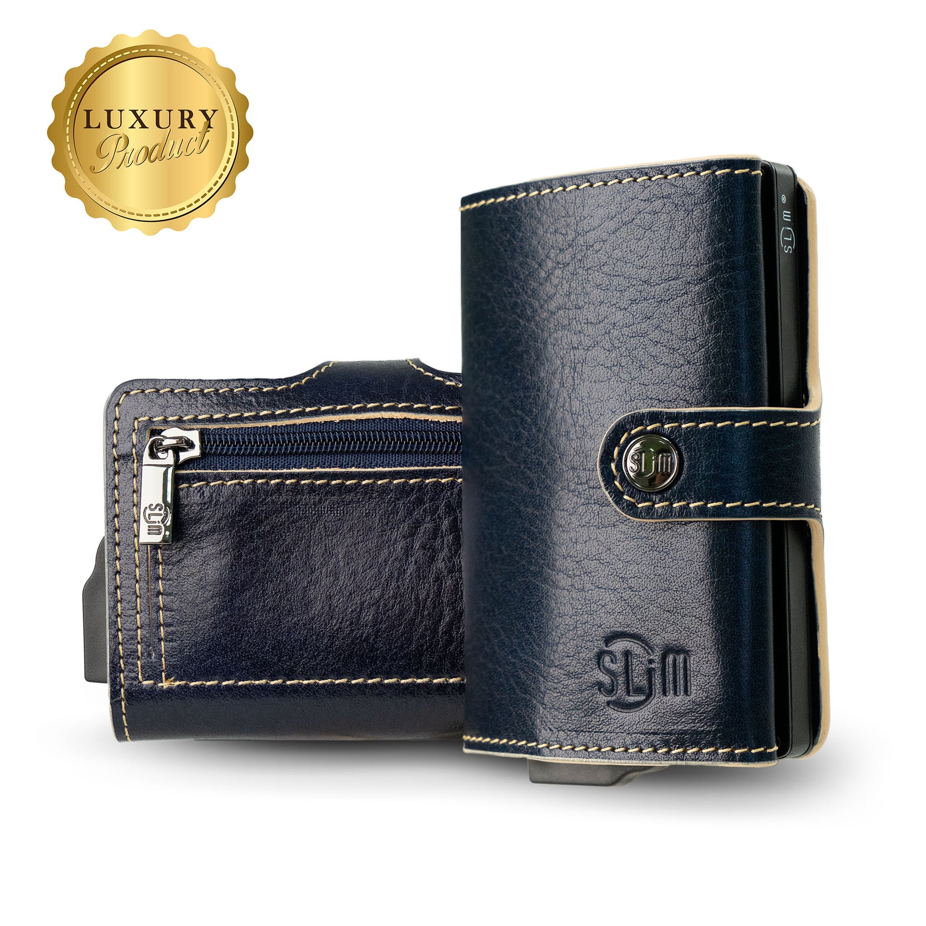 SLim®️ genuine leather blue petroleum multicolour wallet with zip