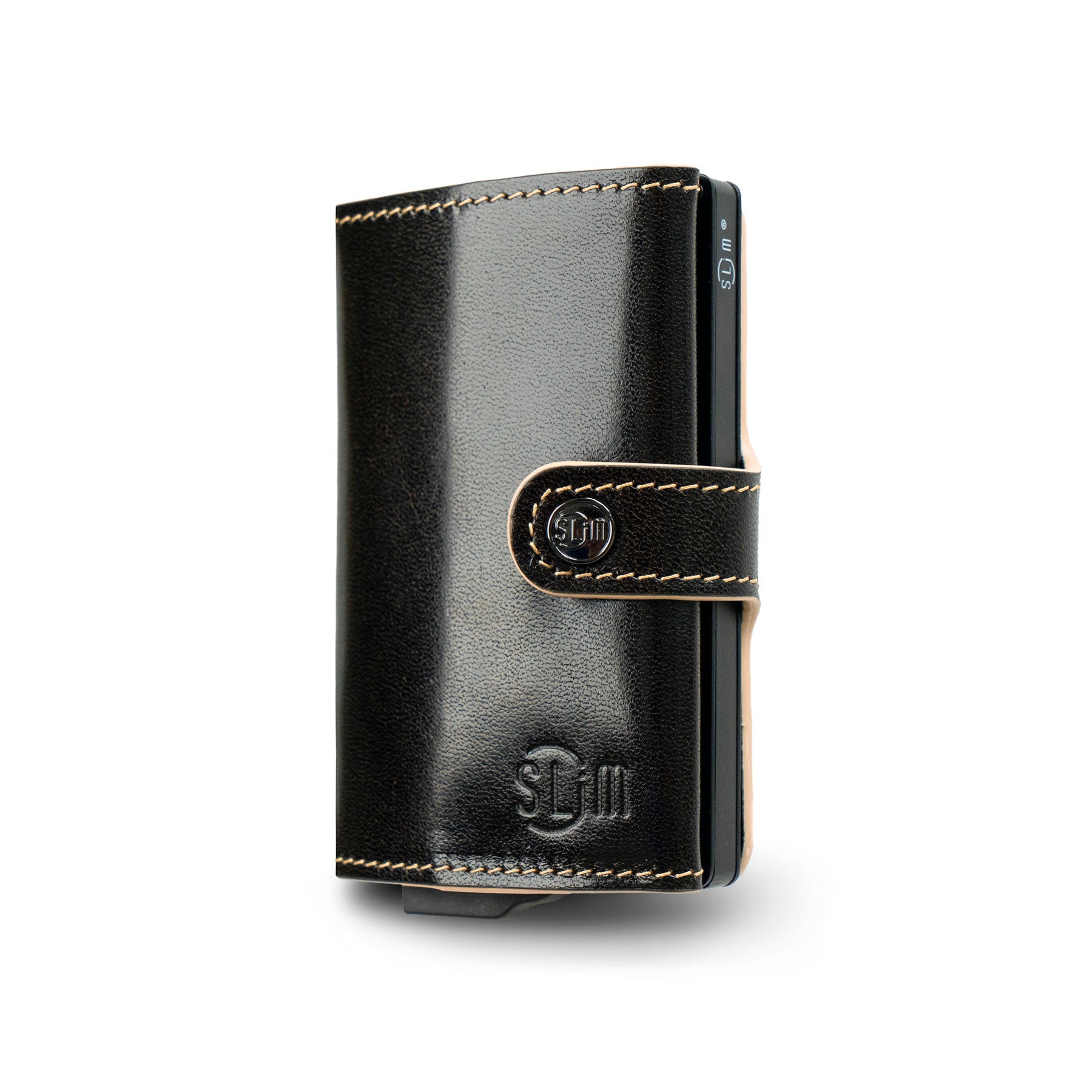 Compact, lightweight, and secure —these are the three adjectives that best describe the SLim® wallet. It measures just 10.5 x 7 x 2 cm and weighs just 75 g! You can enter up to 12 cards, 6/7 cards in the aluminum case with RFID protection and 4/5 in the internal pockets of the wallet.