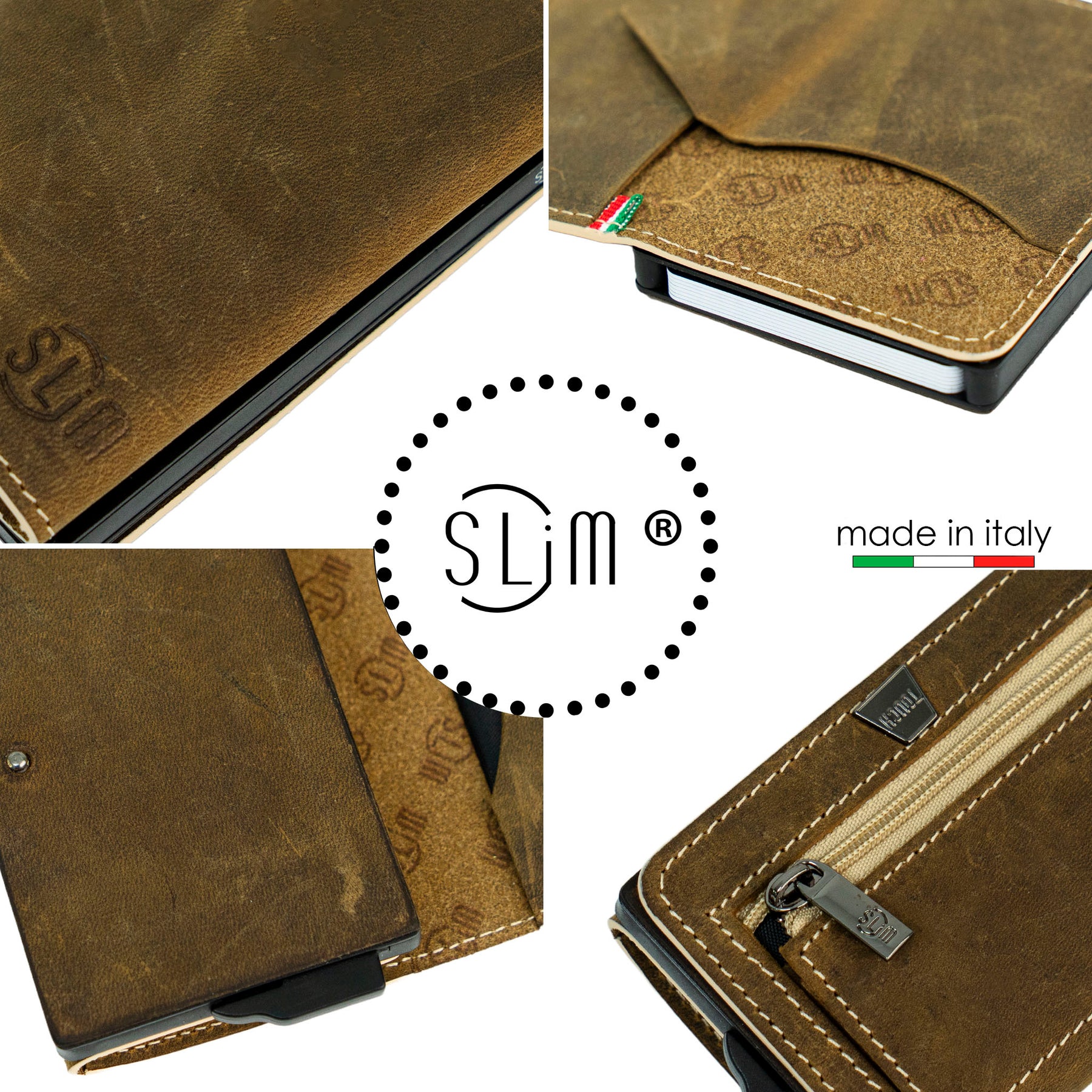 Il portafoglio compatto SLim® nasce da un design originale registrato presso l’Ufficio Brevetti e Marchi italiano. Ogni portafoglio viene realizzato con cura utilizzando tecniche della tradizione della pelletteria italiana. L’attenzione ai dettagli, ai materiali e alle finiture rende ogni pezzo unico, pensato per accompagnarti nella vita quotidiana con stile ed eleganza.