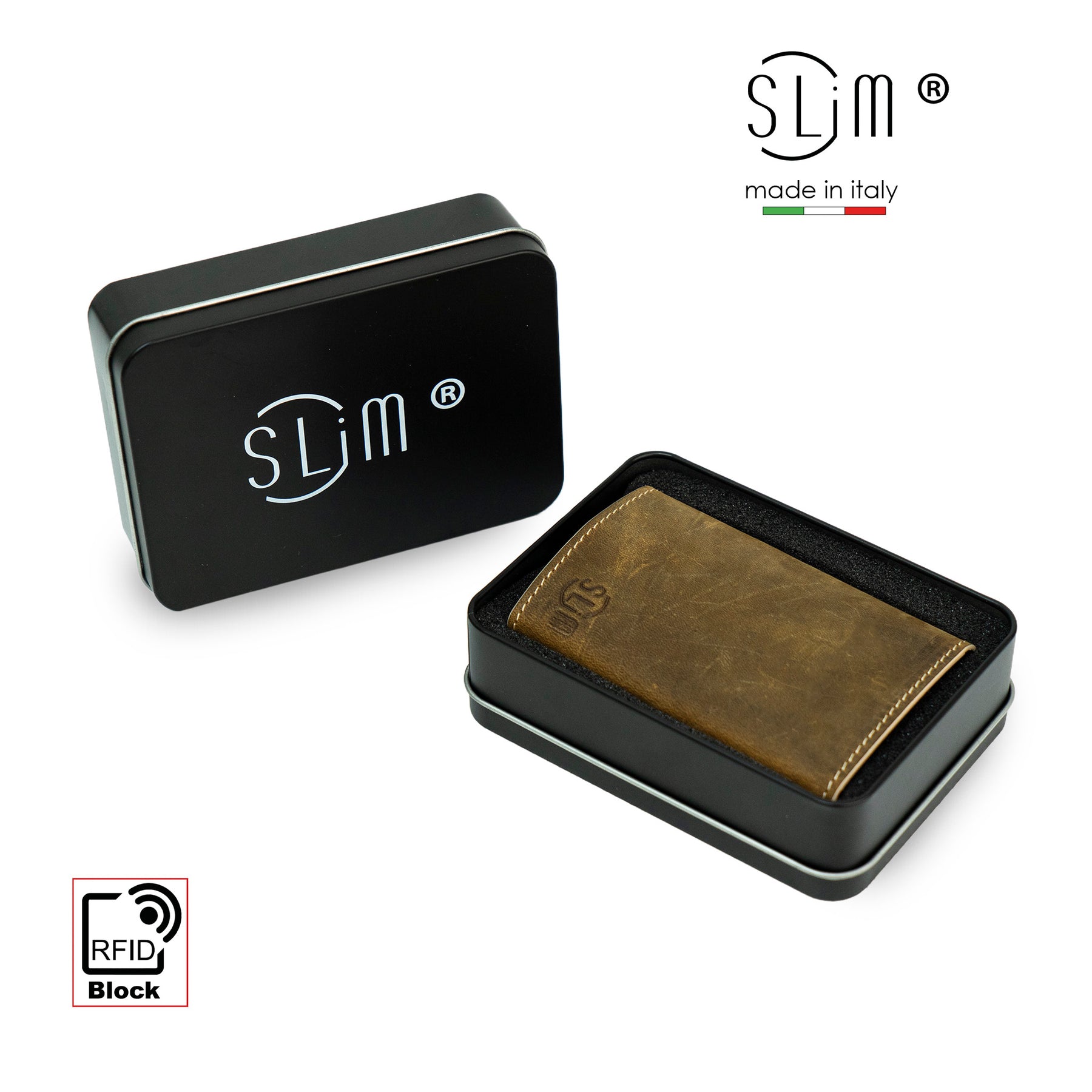 Ogni portafoglio SLim® viene consegnato in un’elegante scatola in metallo nera firmata SLim®.